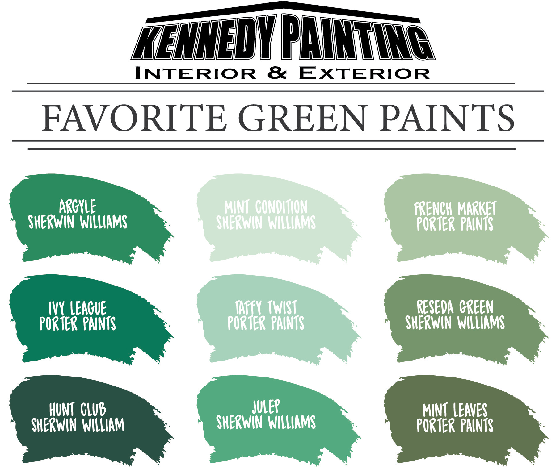 Kennedy Painting has been painting the interior and exterior of homes for many years. In that time, we have worked with plenty of colors, and wanted to offer some of our favorites!