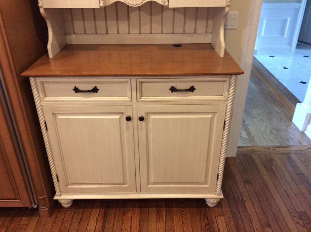 Our client’s goal was not only to transform the hutch, but match it to her kitchen cabinets. And, as an interesting side note, we brought the hutch back to our facility, painting in the controlled environment of our spray shop.