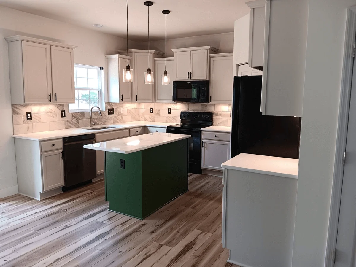 The completed cabinet painting project exceeded expectations. The once-dark cabinets were reborn in a light and airy color, completely transforming the kitchen’s aesthetics. The space instantly felt brighter, more spacious, and undeniably modern. The client’s chosen color, coupled with the satin sheen finish, was the perfect combination to bring the dream into reality. The island’s accent color added a touch of personality while maintaining a cohesive design.